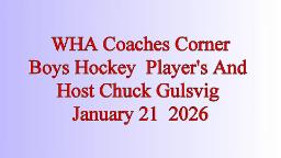 WHA Coaches Corner Boys Hockey Video January 21 2026